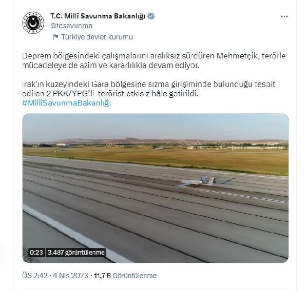 MSB: Irak'ın kuzeyinde 2 terörist etkisiz hale getirildi