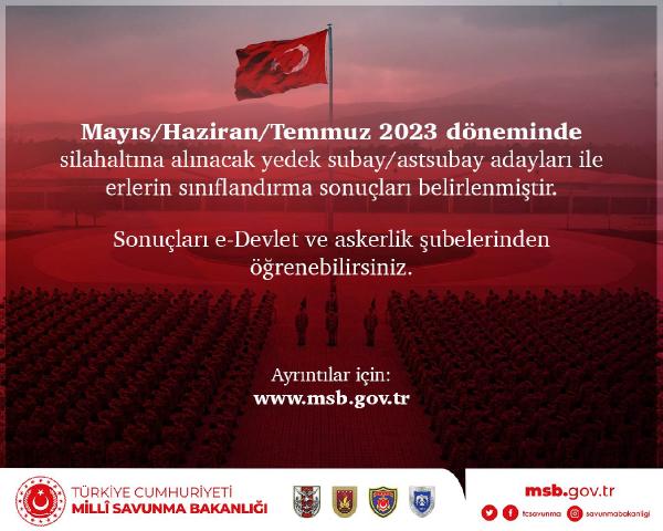 MSB: Mayıs/ Haziran/ Temmuz sınıflandırmaları açıklandı