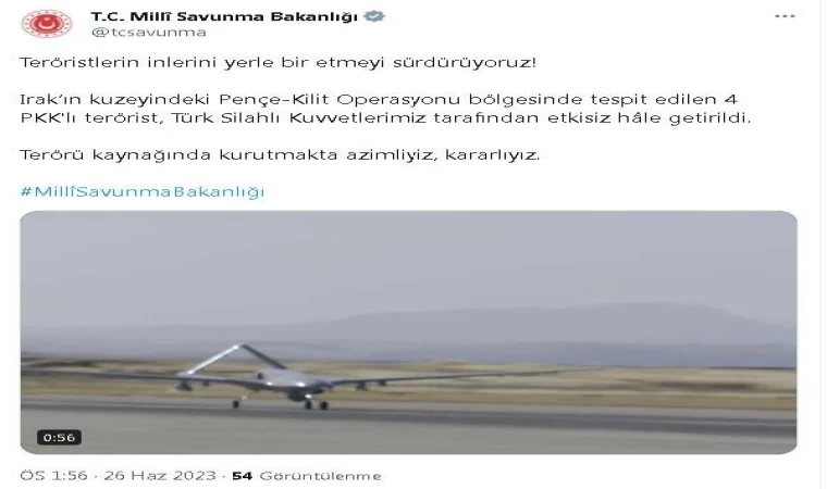 ANKARA, (DHA)- MİLLİ Savunma Bakanlığı (MSB), Pençe-Kilit Operasyonu bölgesinde tespit edilen 4 PKK’lı teröristin etkisiz hale getirildiğini açıkladı.