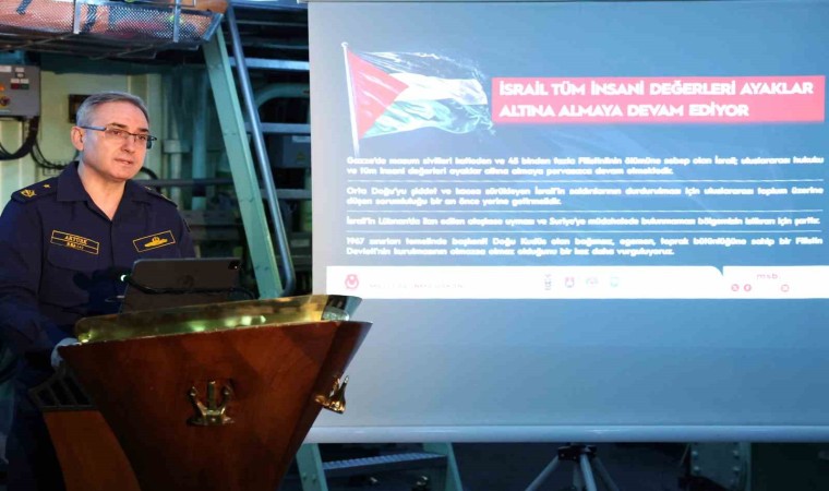 İsrail’in saldırılarına ilişkin Tuğamiral Aktürk, “Öte yandan aylardır Gazze’de masum sivilleri katleden ve 45 binden fazla Filistinlinin ölümüne sebep olan İsrail, uluslararası hukuku ve tüm insani değerleri ayaklar altına almaya pervasızca devam etmektedir. Orta Doğu’yu şiddet ve kaosa sürükleyen İsrail’in saldırılarının durdurulması, Gazze’de kalıcı ateşkes ilan edilmesi ve bölgeye insani yardımların ulaştırılması için uluslararası toplum üzerine düşen sorumluluğu bir an önce yerine getirmelidir. İsrail’in Lübnan’da ilan edilen ateşkese uyması ve Suriye’ye müdahalede bulunmaması bölgemizin istikrarı için şarttır. 1967 sınırları temelinde başkenti Doğu Kudüs olan bağımsız, egemen ve toprak bütünlüğüne sahip bir Filistin Devleti’nin kurulmasının olmazsa olmaz olduğunu bir kez daha vurguluyoruz” dedi.