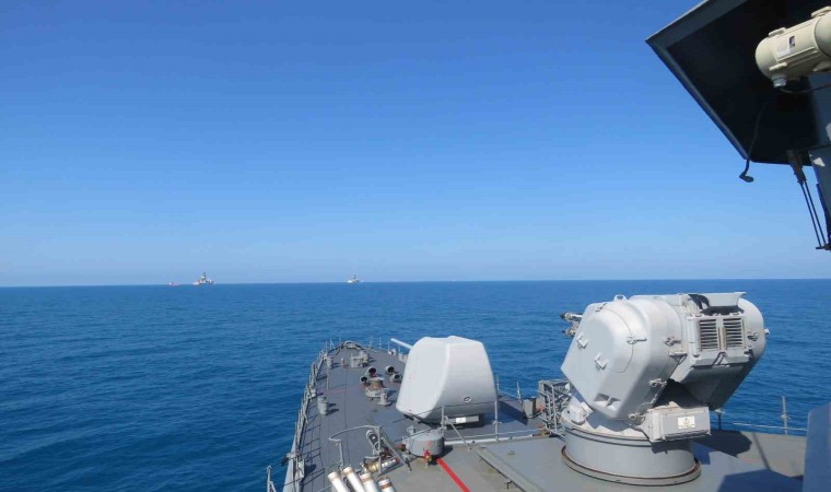 Milli Savunma Bakanlığı, sondaj faaliyetlerine devam eden Kanuni, Yavuz ve Fatih sondaj gemilerine refakat eden TCG Yavuz gemisinin paylaşımını yaptı.