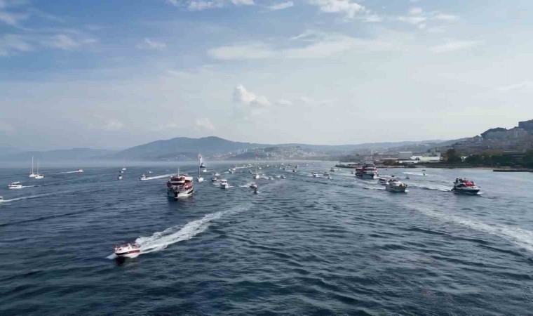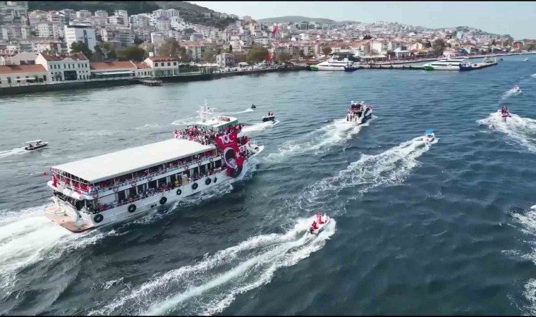 Ünsal Kaptan da yüzlerce vatandaşı bayraklarla gezi teknesine doldurarak kutlamalara katıldı.
