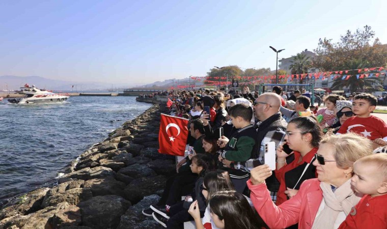 Mudanya’da 29 Ekim Cumhuriyet Bayramı coşkusu, denizde cumhuriyet tekneleri, sokaklarda vatandaşın coşkulu yürüyüşüyle doruğa ulaştı. Gündüz mavi sulara, akşam ise kırmızı beyaz renklere bürünen Mudanya, Cumhuriyet’in 101. yılını büyük bir coşkuyla kutladı.