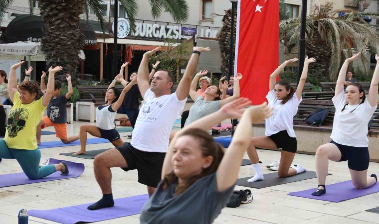 Profesyonel yoga eğitmenleri Çiğdem Karayel ve Esra Bülbül’ün rehberliğinde gerçekleştirilen etkinlikte, denizin ve doğanın huzur dolu atmosferinde Mudanyalılar güne yoga yaparak başladılar.