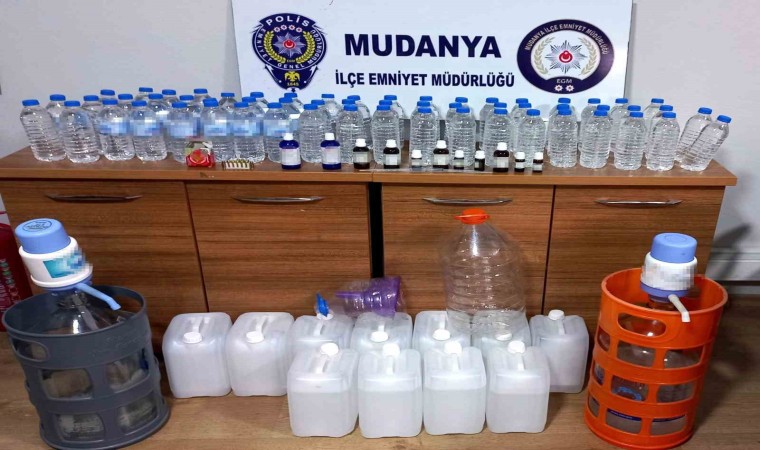 Bursa’nın Mudanya ilçesinde sahte içki ve yapımında kullanılan malzemeler ele geçirildi.