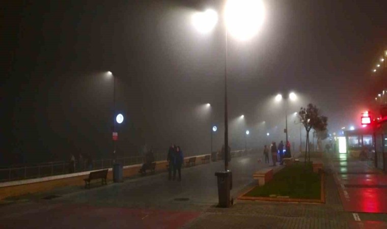 Bursa’nın Mudanya ilçesinde sabah saatlerinde etkili olan sis, akşam saatlerinde etkisini arttırdı. Kordonda görüş mesafesi 5 metreye kadar düşerken, denizde ise göz gözü göremez hale geldi.