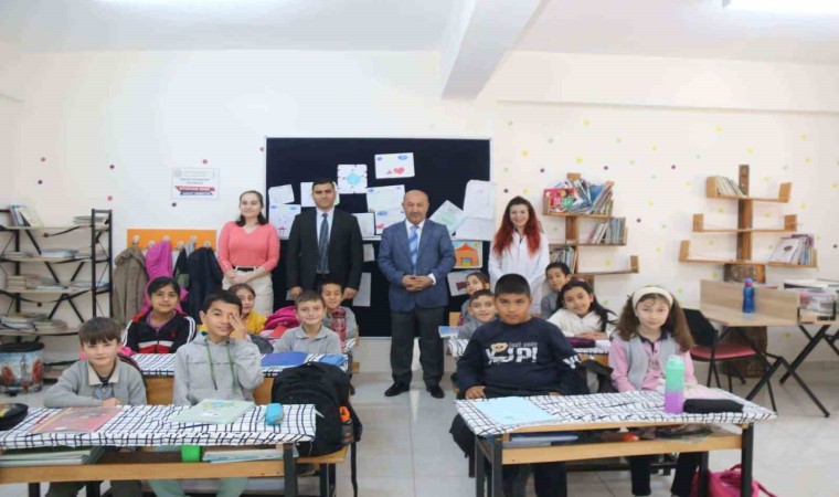 Sınıflarda öğrencilerle sohbet eden Müdür Başyiğit, öğrencilere geleceğe ilişkin önerilerde bulundu ve kitap okumanın önemi üzerinde durarak, onlardan kitap okuma alışkanlığı kazanmalarını istedi.