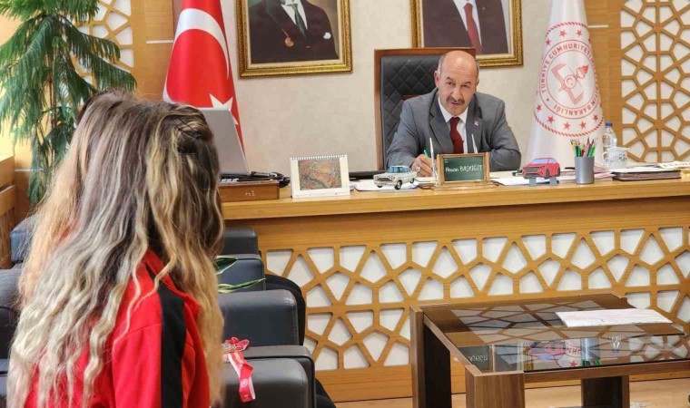 Bahattin Çini Özel Eğitim Meslek Okulu öğrencilerinden Okul Sporları Türkiye Şampiyonasına katılarak genç kızlar atletizm uzun atlama yarışında Türkiye birincisi olan Aynur Gürcan, 100. metrede Türkiye birincisi Hesnanur Arslan, genç erkekler atletizm müsabakalarında uzun atlamada Türkiye dördüncüsü olan İdris Argın, 100 metrede Türkiye dördüncüsü olan İshak Kocakaplan İl Milli Eğitim Müdürlüğüne ziyaret gerçekleştirdiler.