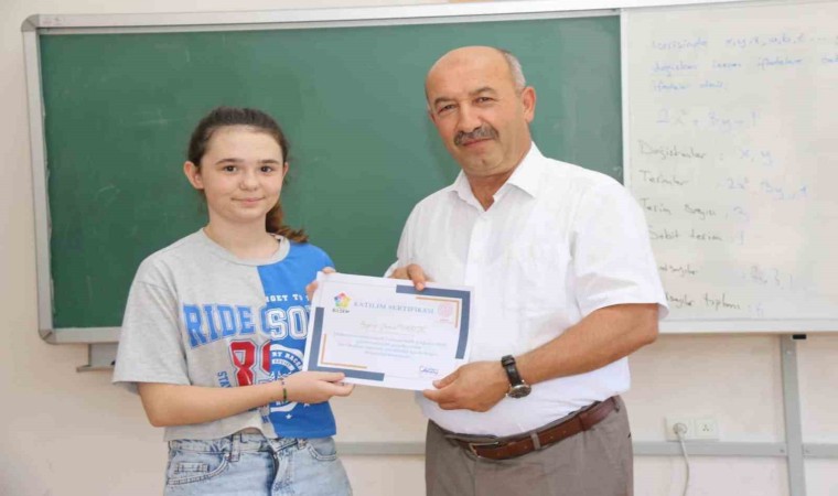 Kütahya BİLSEM yaz okulunu ziyaret eden İl Milli Eğitim Müdürü Hasan Başyiğit, öğrencilerle sohbet etti ve kendilerine yaz okulu katılım sertifikalarını takdim etti.