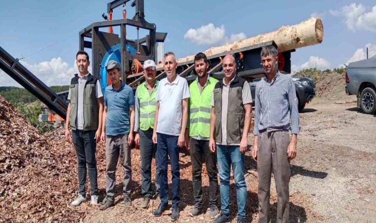 Müdür Dingil, Devekayası köyüne Orköy kredisi ile verilen ve Ozandere Orman İşletme Şefliğindeki kabuk soyma makinesi çalışmasını inceledi ve çalışanlarla makine hakkındaki görüşleri ve memnuniyetleri konusunda sohbet etti.