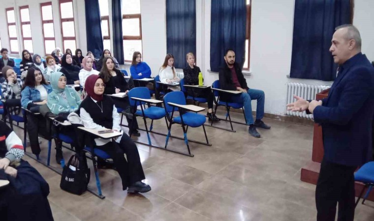 Sosyal Güvenlik Kurumu, yapılanması, sistemin işleyişi, uygulama ve faaliyetleri hakkında bilgiler veren SGK İlçe Müdürü Şevket Şahinli, öğrencilere Sosyal Güvenlik Sisteminin ve SGK’nın toplum ve birey hayatına önemini anlattı.