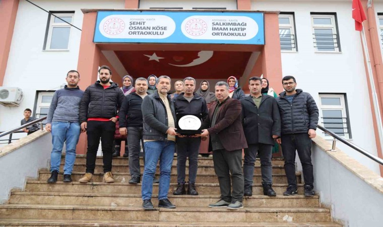 Salkımbağı (Alüt) Köyü sakinlerinden aynı zamanda da Okul Aile Birliği Başkanı Hasan Çetin, tüm köy sakinleri adına Müdür Tahsin Özbek’e okulda yapılan bakım ve onarım çalışmalarından dolayı plaket takdim etti.