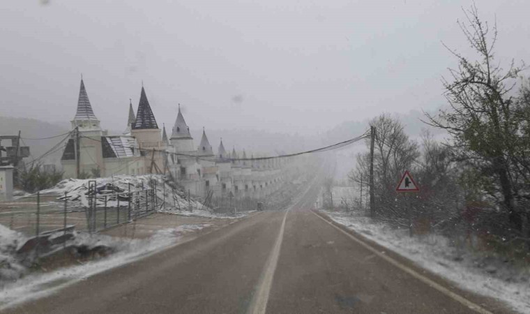 Bolu’nun tarih dolu ilçesi Mudurnu, gece saatlerinden sabaha kadar süren kar yağışı dolayısıyla beyaz örtüyle kaplandı.