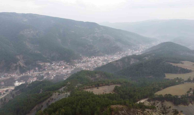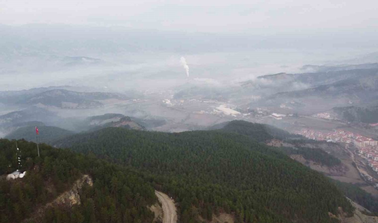 Bolu’nun sisle kaplanan Mudurnu ilçesindeki sis tabakası havadan görüntülendi.