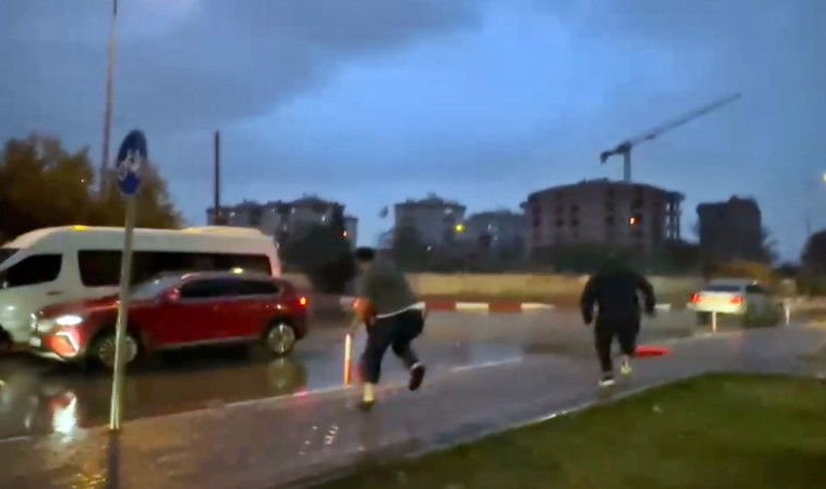 Kovalamaca, ara sokaklarda sürerken, inatçı cemaatten daha fazla kaçamayacağını anlayan madde bağımlısı, sirenlerini çalarak karşı yönden gelen polis aracını durdurarak kendisi arka koltuğa attı. Aracın çevresini saran cemaat polise yaşadıklarını anlatırken, şahıs elindeki bıçağı araçtan dışarıya attı.