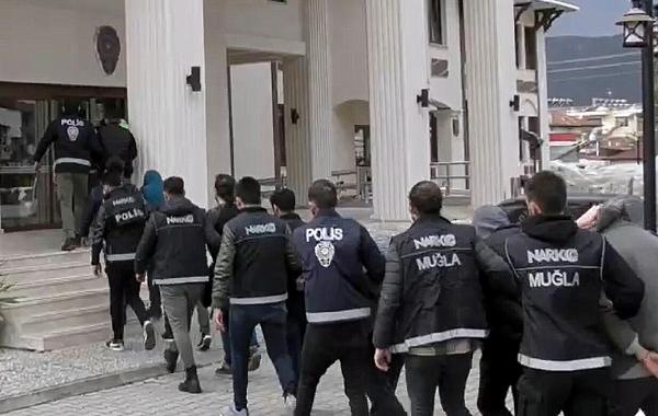 Muğla İl Emniyet Müdürlüğü Narkotik Suçlarla Mücadele Şubesi ekipleri, Muğla'nın Fethiye ve Seydikemer ilçeleri ile İzmir'de uyuşturucu ticaretine yönelik çalışma başlattı. Önceden belirlenen 30 adrese dün sabah saatlerinde yapılan eş zamanlı operasyonlarda 31 şüpheli yakalandı. Narkotik, İstihbarat, Kaçakçılık ve Organize Suçlarla Mücadele, Terörle Mücadele, Asayiş ile Özel Harekat Şube Müdürlükleri ve İnsansız Hava Araçları (İHA) Büro Amirliği'nden 41 ekip, 168 personel ile 4 narkotik arama köpeğinin katıldığı operasyonda yüklü miktarda uyuşturucu madde, 2 hassas terazi, 1 Kalaşnikof tüfek, 2 ruhsatsız tabanca ve 527 mermi ele geçirildi. Operasyonda gözaltına alınan toplam 31 şüphelinin işlemlerinin sürdüğü bildirildi. (DHA)