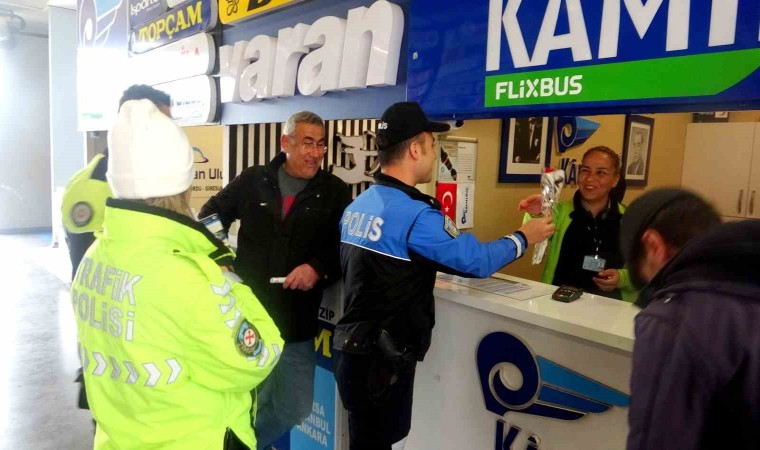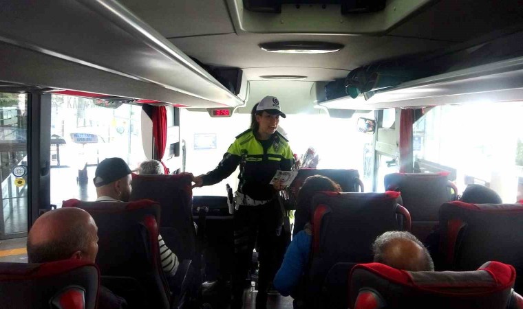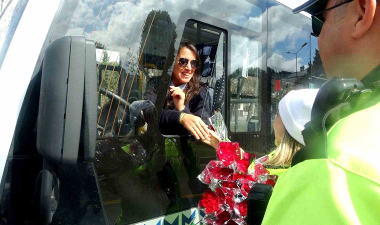 Muğla’da trafik ekipleri emniyet kemeri bilgilendirmesi yaparken hem de bayan şoförlerin ve otobüste yolculuk yapan kadınların gününü kutladı.
