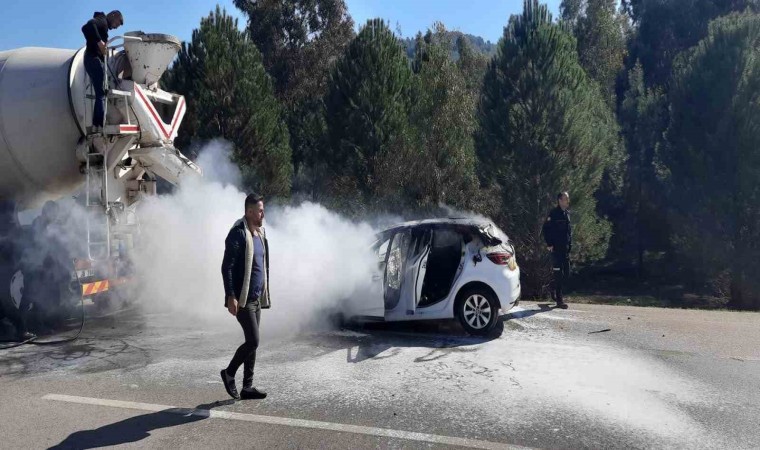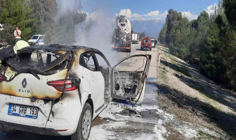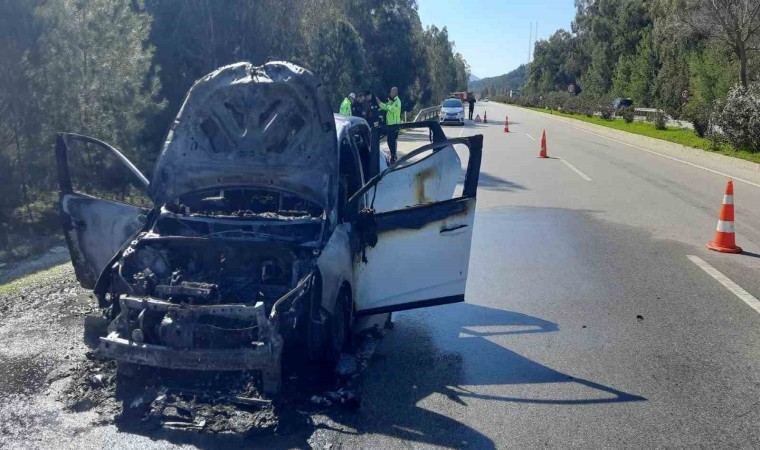 Muğla’nın Seydikemer ilçesinde bir araç seyir halinde ilerlerken aniden alev alması sonucunda yangın çıktı.