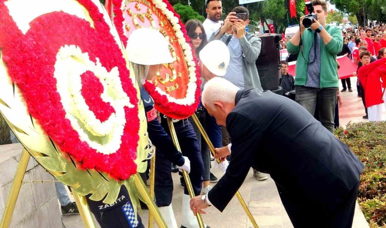 Muğla’da cumhuriyetin kuruluşunun 100. yılı kutlamaları Atatürk büstüne çelenk sunulması ile başladı.