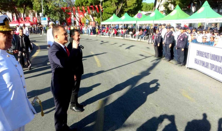 Menteşe Cumhuriyet Meydanı’ndaki törenler Muğla Büyükşehir Belediyesi ve Emirbeyazıt İlkokulu Halk Oyunları Ekiplerinin sunduğu Ege Yöresi gösterileri ile renklendi. Muğla Jandarma Komando Tabur Komutanlığı’nın gösterisi ise izleyicilerden büyük alkış aldı.