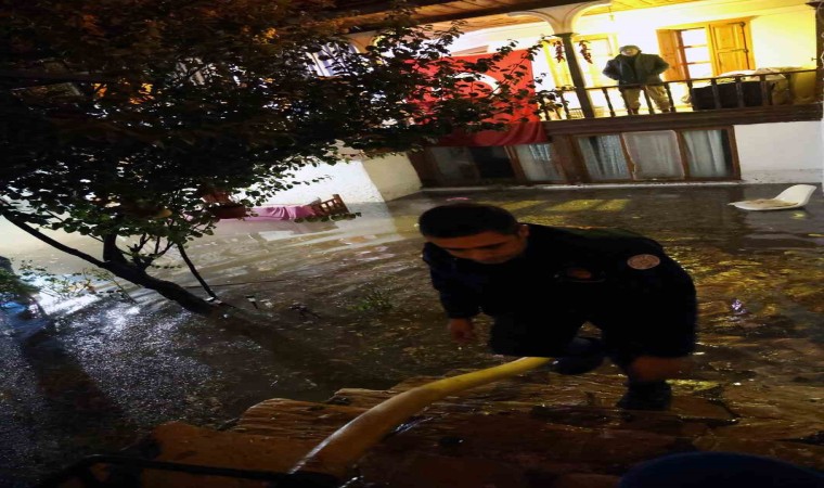 45 dakika süren sağanak ve dolu yağışı sonrası sokaklarda ve evlerde su baskını yaşandı. Özellikle Menteşe’nin kentsel sit alanı ve Atatürk Bulvarı üzerindeki binaların bahçe ve bodrum katları tamamen su altında kaldı.