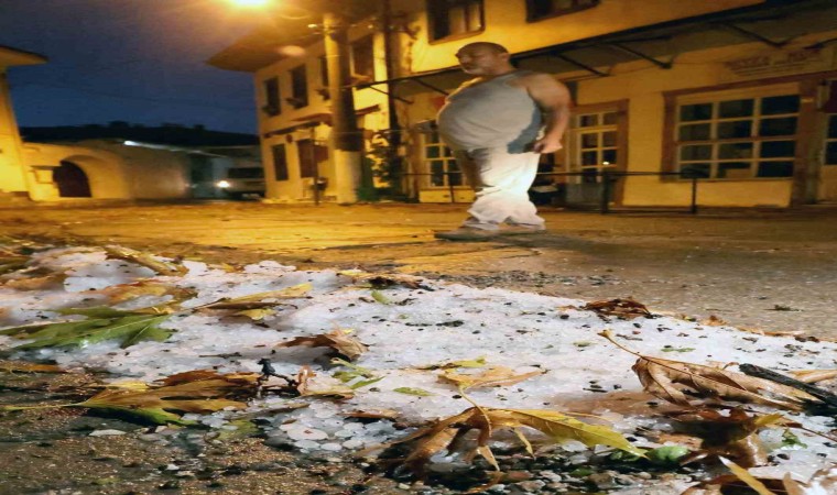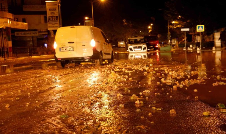 Muğla’nın Menteşe ilçesinde sabah saat 05.00’te başlayan gök gürültüsü, fırtına ve yağmur ile birlikte dolu yağışı sonrası su baskınları yaşandı. Fındık büyüklüğünde yağan dolu ağaçların yapraklarına zarar verdi.