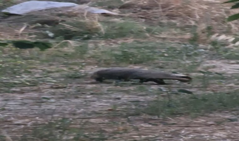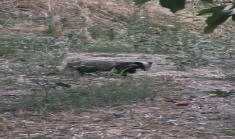 Tarlada yem ararken görüntülenen koruma altındaki porsuk, görüntülenmesinden kısa bir süre sonra gözden kayboldu.