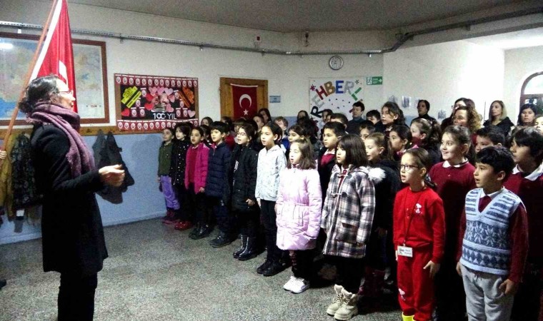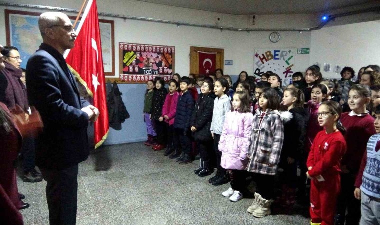Muğla’nın Menteşe ilçesinde Kocamustafa Efendi İlkokulu’nda öğrenciler ve öğretmenler şehitler için saygı duruşunda bulunarak, İstiklal Marşı’nı okudu.