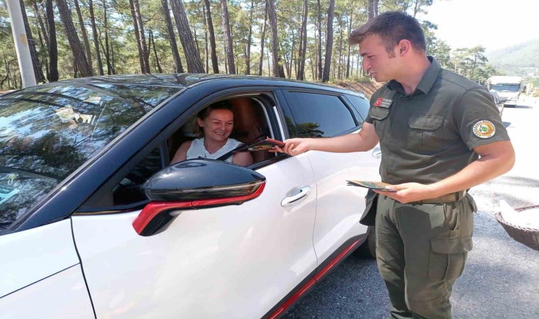 Marmaris Çetibeli jandarma kontrol noktasında Marmaris Orman İşletme Müdürlüğü ekipleri tarafından bayram tatili için bölgeye gelen tatilcilere yangın uyarı broşürleri verildi. Orman ekipleri broşürlerin yanında şeker ve kolonya ikramında da bulundu.