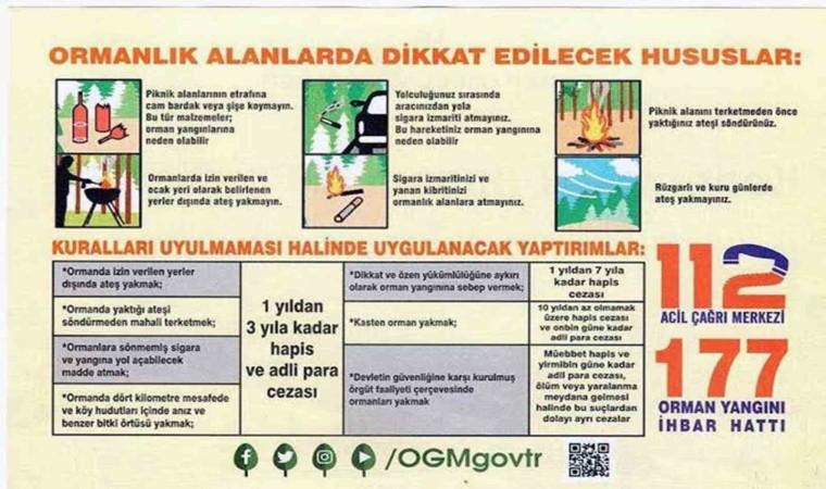 Muğla Orman Bölge Müdürlüğünde özellikle piknik ve mangal ateşinden çıkan orman yangınlarının önlenmesi amacıyla bayram tatili için yöreye gelen ziyaretçilere broşür dağıtılıyor.