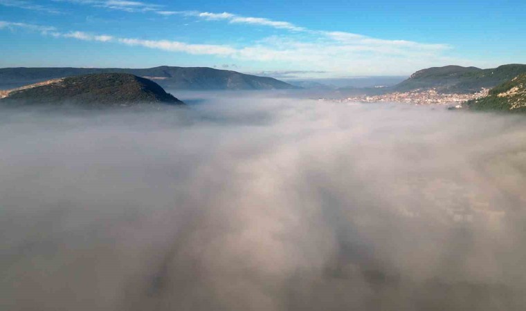 Muğla’nın Menteşe ilçesi sabah saatlerinde sis bulutu içinde adeta kaybolurken, ortaya kartpostallık görüntüler çıktı.