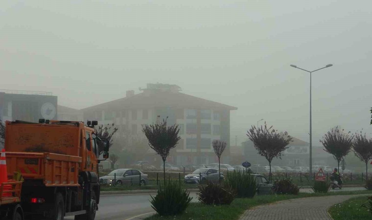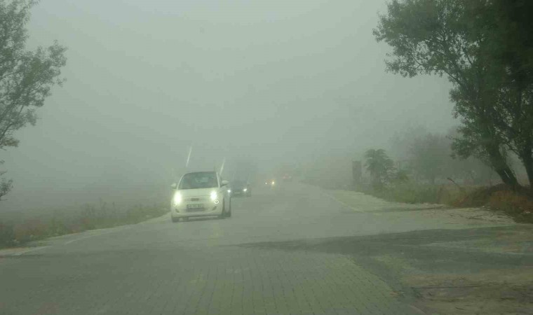 Muğla’nın Menteşe ilçesinde yoğun sis nedeniyle görüş mesafesi 10 metreye kadar düştü.