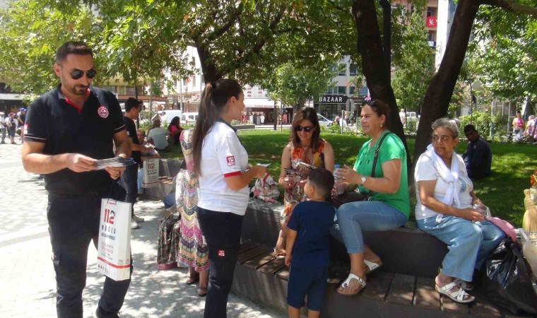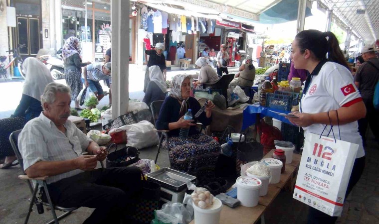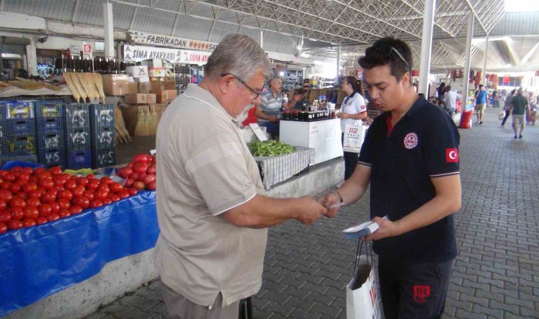 Muğla 112 Acil Çağrı Merkezi çalışanları hem asılsız ihbarları en aza indirmek, hem de hangi durumlarda ihbar yapılacağı konusunda çalışma yürütüyor. Menteşe ilçesinde Perşembe günleri kurulan bölgenin büyük halk pazarında 112 Acil Çağrı Merkezi personeli tarafından broşür dağıtımı yapıldı.