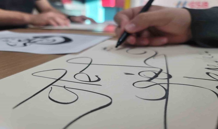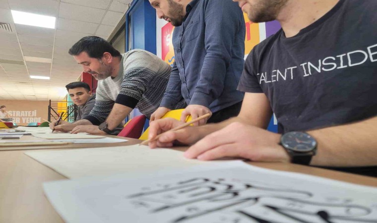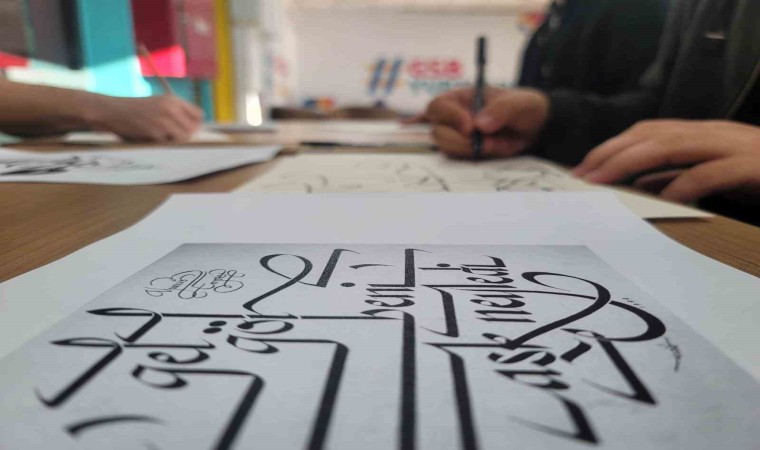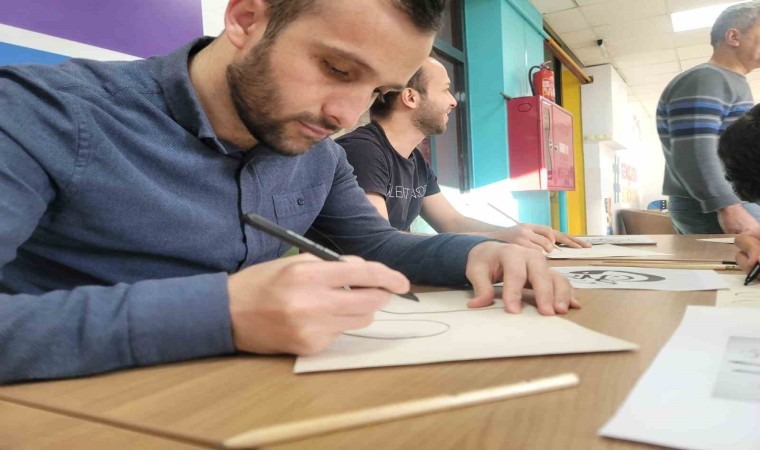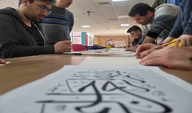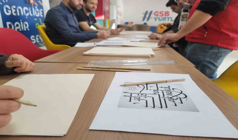 Muğla erkek yurdunda öğrenciler kaligrafi ve hat sanatı atölye çalışmaları ile hat sanatının inceliklerini öğreniyor.