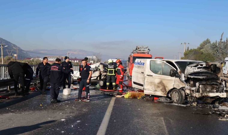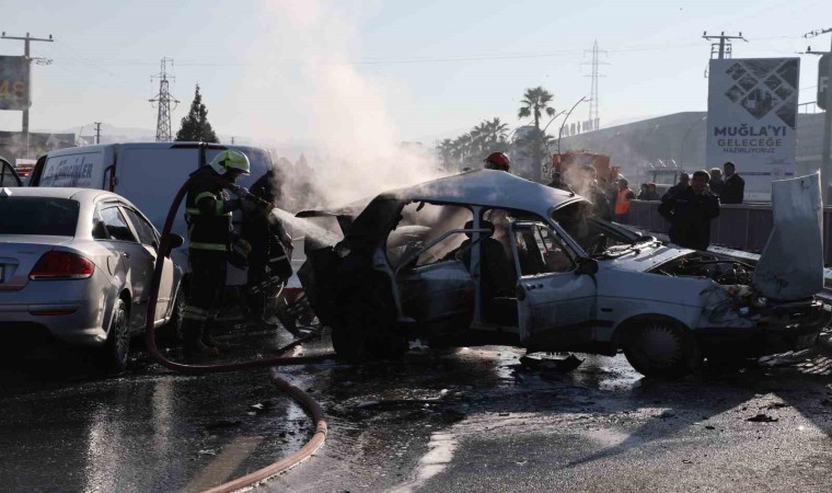 Muğla’da meydana gelen zincirleme trafik kazasında 1’i ağır 7 kişi yaralanırken, kaza sonrası alev alan iki araç itfaiyenin müdahalesi ile söndürüldü.