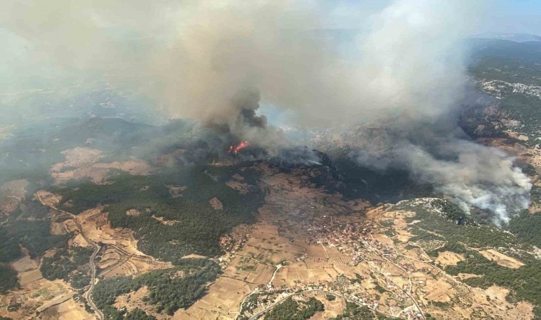 Muğla’nın Menteşe ilçesinde sarp arazide ormanlık alanda çıkan yangın rüzgarın etkisi ile büyürken, yangına havadan ve karadan yoğun müdahale sürüyor.