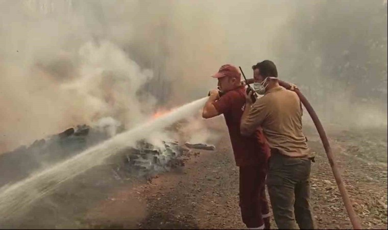 Rüzgarın etkisiyle genişleyen alevlere karşı karadan ve havadan 5 saattir yoğun bir mücadele yürüten ekipler, yangını kontrol altına almak için çalışmalarını aralıksız sürdürüyor.