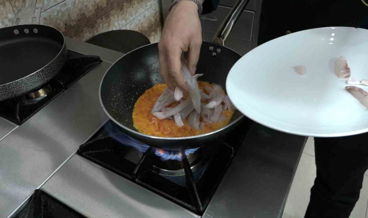Rizeli balıkçı esnafı etle ve tavukla yapılan çökertmeyi bu kez levrek balığı ile yaptı.