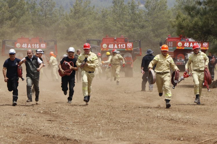Eğitim sonrasında Muğla Orman Bölge Müdürü Salim Karabulut, 2023 yılı iş başı eğitimlerini Marmaris Orman İşletme Müdürlüğünde yapılan eğitimle tamamladıklarını belirterek, "12 Orman İşletme Müdürlüğünde yangın söndürme işçisi ve arazöz operatörleri, orman muhafaza memurları ve teknik elemanlar olmak üzere toplam bin 550 personeline eğitim verdik. 2023 yılı yangın sezonu döneminde Muğla Orman Bölge Müdürlüğü emrinde görev yapacak hava ve kara gücümüz şuan itibarıyla bin 550 personel, 133 ilk müdahale aracı, 134 arazöz ve su tankeri, 14 dozer, 14 greyder kara gücü olarak, 12 yangın söndürme ve 1 idari olmak üzere 13 helikopter, 3 amfibik, 2 antonov tanker ve 2 airtractor olmak üzere 7 uçak ve 1 İHA olmak üzere 21 hava aracı da hava gücü olarak görev yapacak" diye konuştu.https://youtu.be/YZ8h2y3xAW8