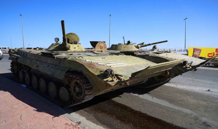 Suriye’nin başkent Şam’da merkeze 10 kilometre uzaklıkta Fayez Mansour yolunda güvenlik güçleri köprü üzerinde terk edilmiş 4 tank buldu. Tankların mühimmat yüklü olduğu görülürken yoldan geçen bazı vatandaşlarda tankların üzerine ‘Freedom’ yazılı Suriye bayrağı açıp fotoğraf çektirdi.