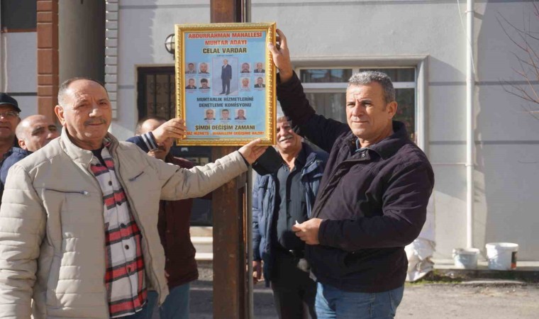 Abdurrahman Mahallesi Muhtar Adayı Celal Vardar ve ekibi, çevre kirliliğini önleme amacıyla tasarlayarak mahallenin belli bölümlerine astıkları altın yaldızlı çerçevelerle vatandaşların desteğini bekliyor. Listesinde bulunan azaların bu çerçeveleri yaparken çevreye duyarlı olarak hareket ettiğini ve çevre kirliliğini önlemek için bu şekilde bir tasarım yaptıklarını söyleyen Abdurrahman Mahallesi Muhtar Adayı Devlet Su İşleri’nden emekli Celal Vardar, yaklaşık 9 noktada çerçevenin 3 tanesinin altın yaldızlı olduğunu ifade etti.
