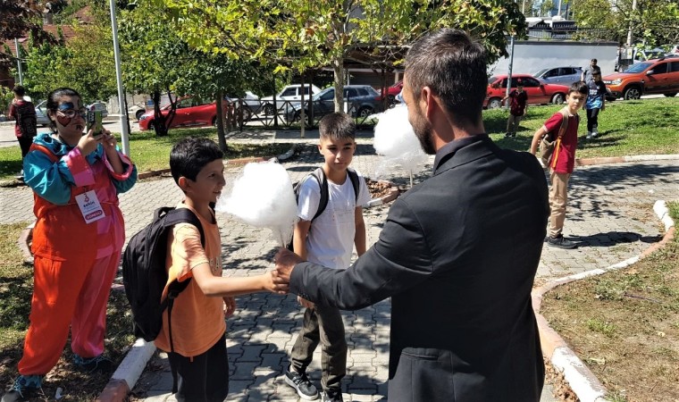 Karabük’te bir muhtar adayı yeni eğitim öğretim yılının ilk gününde öğrencilere pamuk şeker ile balon dağıtımı yaptı.