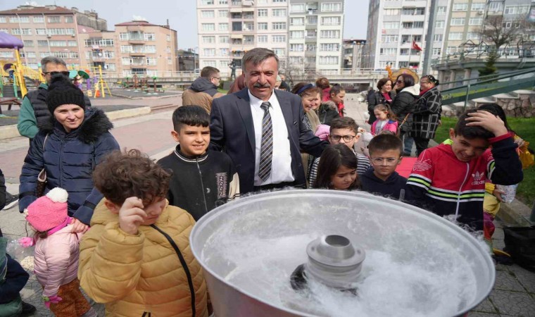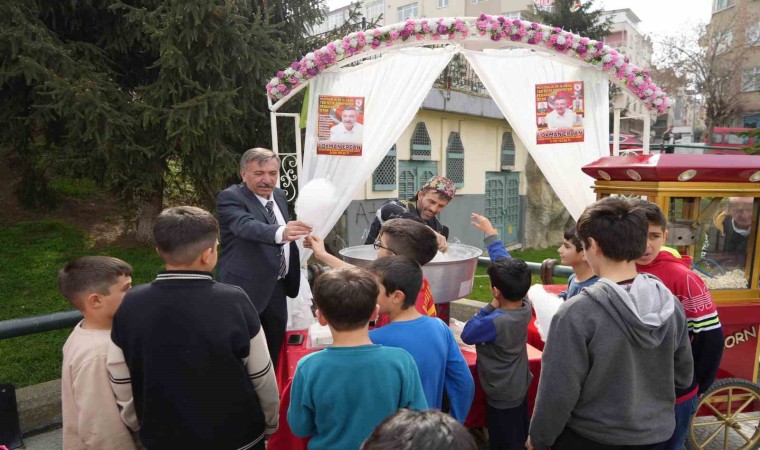Samsun’da muhtar adayı olan emekli polis memuru, çocuklara ücretsiz pamuk şeker ve patlamış mısır dağıttı.