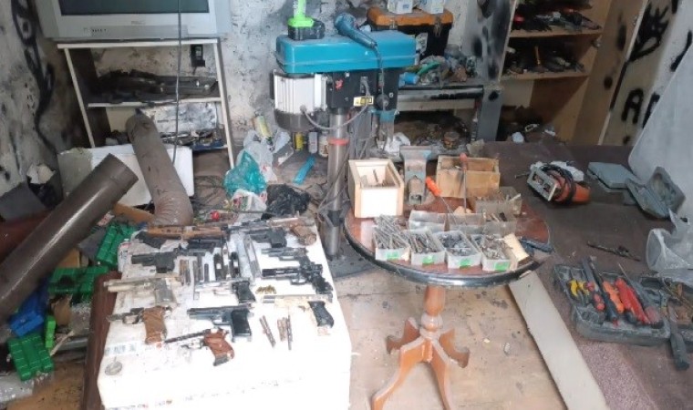 İzmir Organize Suçlarla Mücadele Şube Müdürlüğü ekipleri, Ç.U.’nun (31), babası M.U. (59) ve hanımı E.U. (32) ile birlikte, Karşıyaka ve Bayraklı ilçelerinde yasa dışı silah ticareti ve imali yaptığı bilgisi üzerine harekete geçti. Savcılıktan alınan izinle şüphelilere ait 2 ev ve 1 iş yerine polis ekipleri tarafından gerçekleştirilen baskında, 3 ruhsatsız tabanca, 1 kuru sıkı tabanca, 8 şarjör, 69 fişek ve tabanca imalinde kullanılan çok sayıda malzeme ele geçirildi.