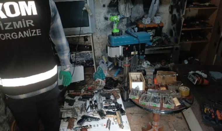 İzmir’de polis ekipleri tarafından 3 ayrı adrese gerçekleştirilen operasyonda, silah imalatında kullanılan çok sayıda malzeme ele geçirildi. Olayla ilgili gözaltına alınan şüphelilerden birinin Bayraklı ilçesinde bir mahalleden muhtar adayı olduğu, diğer şüphelilerin de eşi ve babası olduğu ortaya çıktı.