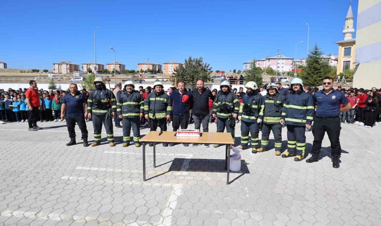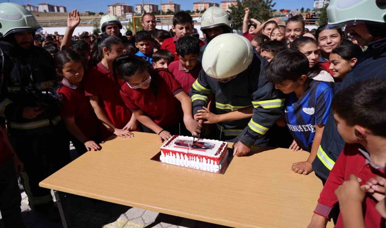 Sivas’ta Ahmet Turan Gazi Mahallesi Muhtarı Hüseyin Aydın, mahallesindeki TOKİ Ahmet Yesevi İlk ve Ortaokulu öğrencileriyle birlikte İtfaiye Haftası nedeniyle itfaiye erlerine sürpriz hazırladı. 112 Acil Çağrı Merkezini arayarak okulun ikinci katında yangın çıktığı ihbarında bulunan Hüseyin Aydın, öğrencilerin üçüncü katta mahsur kaldığını belirtti. İhbarı alarak harekete geçen itfaiye ekipleri okul bahçesinde öğrenciler tarafından alkışlarla karşılandı. Yangın ihbarının sürpriz olduğunu anlayan itfaiye personeli, öğrencilerle birlikte kendileri için hazırlanan pastayı kesti.