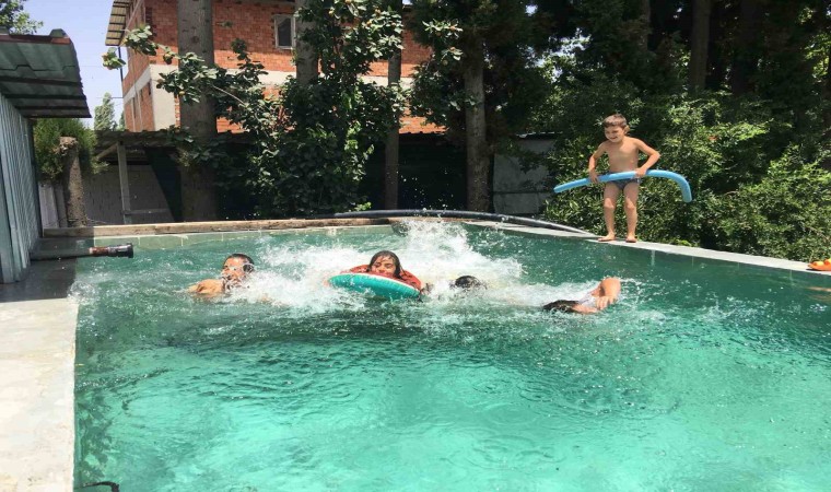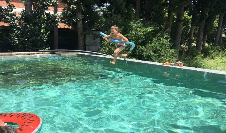 Aydın’ın çok sıcak olduğunu ifade eden bir Reyhan’ın annesi Seda Aydın, “Öğlen saatleri gelince çocuklar sıcaktan şikayetçi oluyor. Evde de durmuyorlar. Tatil olduğu için gezip oynamak istiyorlar. Biz de çocukları muhtarın havuzuna getirdik. Burada yüzüyorlar onlar da biz de rahat ediyoruz” dedi.