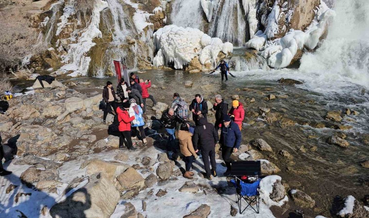 BİTLİS (İHA) – Van’ın Muradiye ilçesinde her mevsim olduğu gibi kış aylarında da cıvıl cıvıl olan Muradiye Şelalesi, yurdun dört bir yanında ziyaretçi akınına uğruyor.