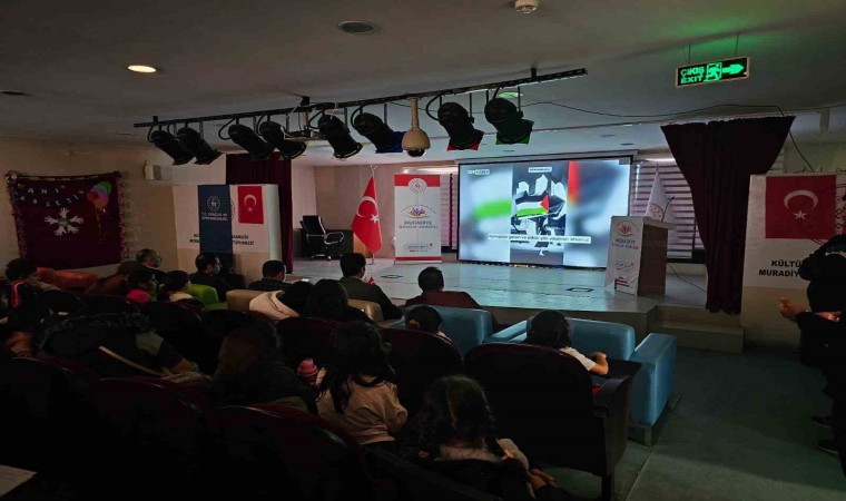 Çocuk Hakları Günü nedeniyle İsrail soykırımı sonucu hayatını kaybeden Filistinli çocukların konu alındığı sinema etkinliği düzenlendi. Kaymakam Melih Aydoğan’ın da katıldığı etkinliğin ardından İHA muhabirine açıklamada bulunan Gençlik ve Spor Müdürü Çağlar Kayakeser, savaşsız ve çocukların ölmediği bir dünya istediklerini söyledi. Küçük yaşlarda oyun oynaması gerekirken mezarları kazılan çocukların olduğu dünyada çocuk haklarından söz etmenin mümkün olmadığını söyleyen Çağlar Kayakeser, “Muradiye Gençlik ve Spor Müdürlüğü olarak Dünya Çocuk Hakları Günü münasebetiyle bu programı düzenledik. Bu programın ana teması Filistin’dir. Şu an bütün hakları gasp edilirken, dünya çocuk haklarından bahsetmek onlarsız mümkün değil. O çocukların parklarda oynaması gerekirken mezarda olması, Dünya Çocuk Hakları Günü’nde en ağır basan tema olmalıdır. Amacımız aynı zamanda çocuklarımızın haklarını bilen, kendini bilen bilinçli nesiller oluşturmak ve çocuklarımızın haklarını bilerek davranmalarını ve işlerini geliştirmelerini amaçlamaktayız” dedi.