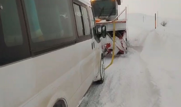 Van’ın Muradiye ilçesinde kara saplanan araçlar karla mücadele ekiplerinin çalışmalarıyla kurtarıldı.